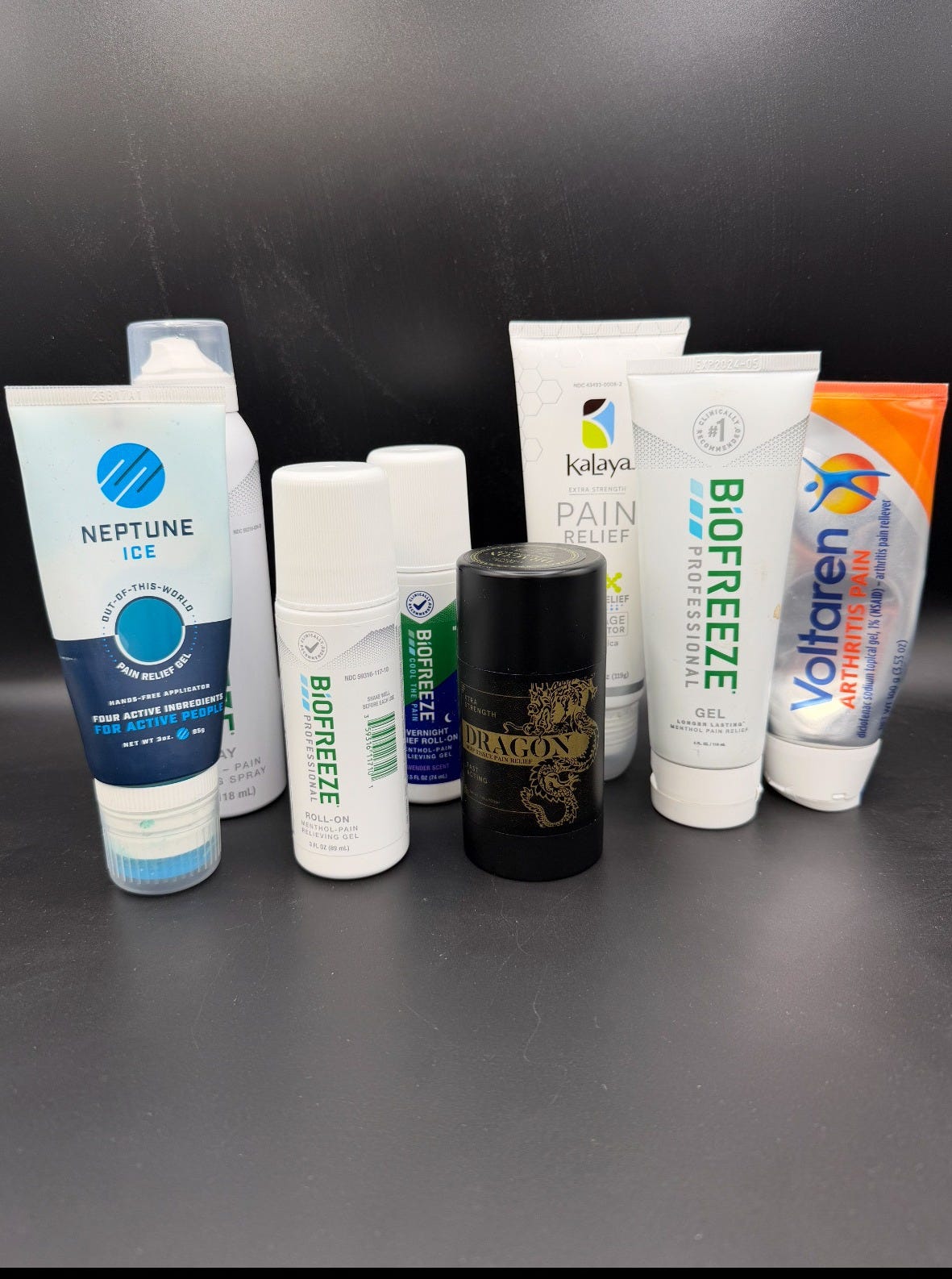 I keep a variety of topical creams—sprays and roll-ons—ready to go for my neck and shoulders. It’s worse on migraine days, but since January 20, 2022, I’ve become a sommelier of over-the-counter pain creams, gels, and potions. Neck pain with a sharper edge on the right side? I’ll start with 2024 Voltaren, then a layer of Biofreeze spray.